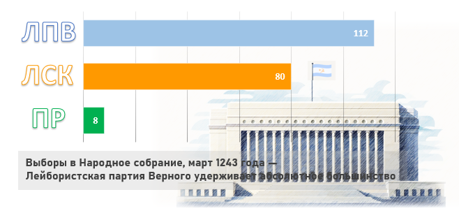 選挙の結果、ヴェールヌイ労働党は112議席を獲得し、人民議会における過半数を維持、政権の継続を決めた。