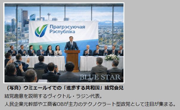 進歩する共和国(Прагрэсуючая Рэспубліка)は、現行憲法下において実に650年ぶりに誕生した新党である。